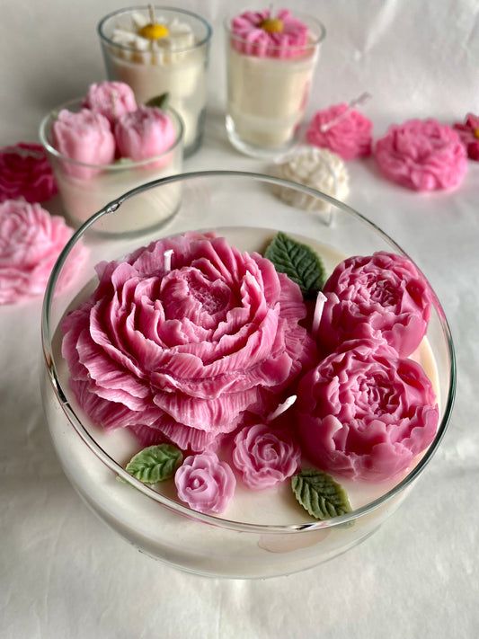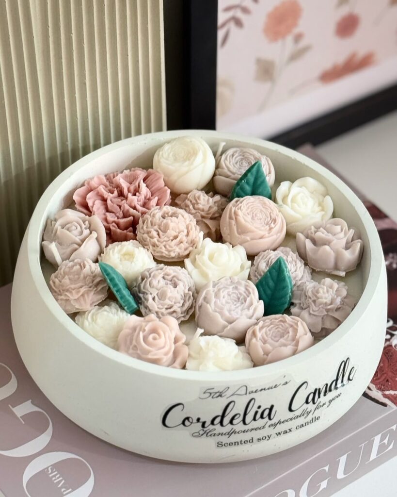 Ez a méret tökéletes, ha több nagyobb virágot szeretnél elhelyezni rajta, vagy ha sok apró díszt használnál. A gyertyák többféle anyagba kerülnek kiöntésre: üveg, fém, kerámia vagy gipsz tartókba – választhatsz az ízlésed szerint.